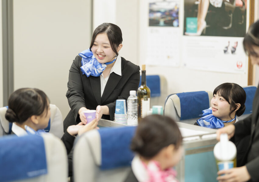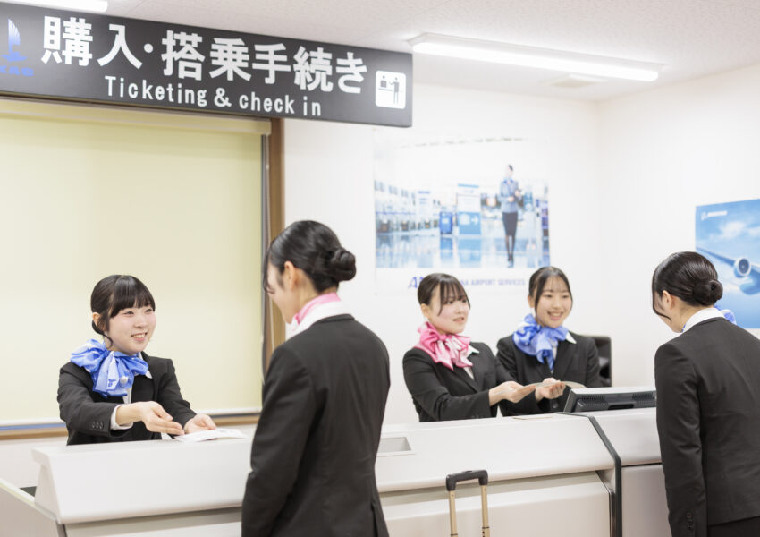 飛行機や空港に関わる基本の知識を学ぶとともに、エアラインにおける接客の基本を学びます。
